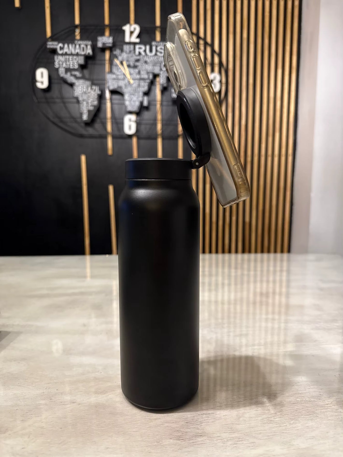 Designed for ultimate flexibility, the integrated magnetic mount allows 360° rotation and 90° tilt, letting you find the perfect viewing angle every time. Effortlessly switch between portrait and landscape for filming, video calls, navigation, or workouts — all with rock-solid stability, even when the bottle is empty.